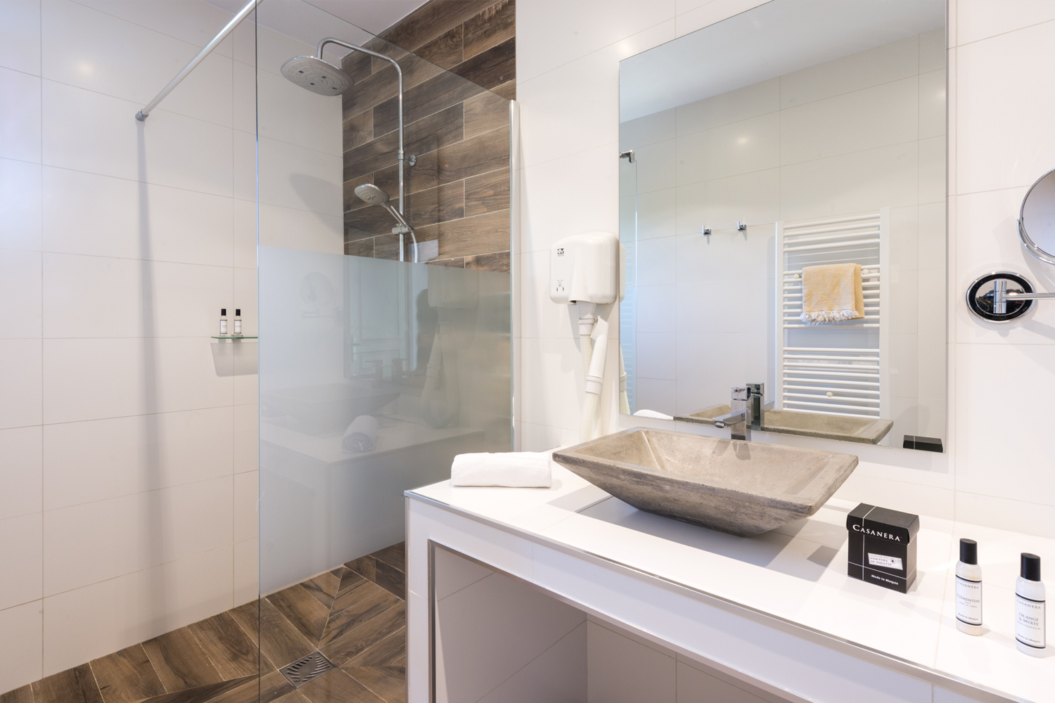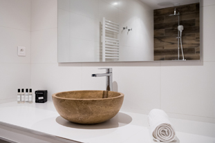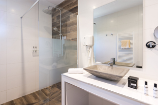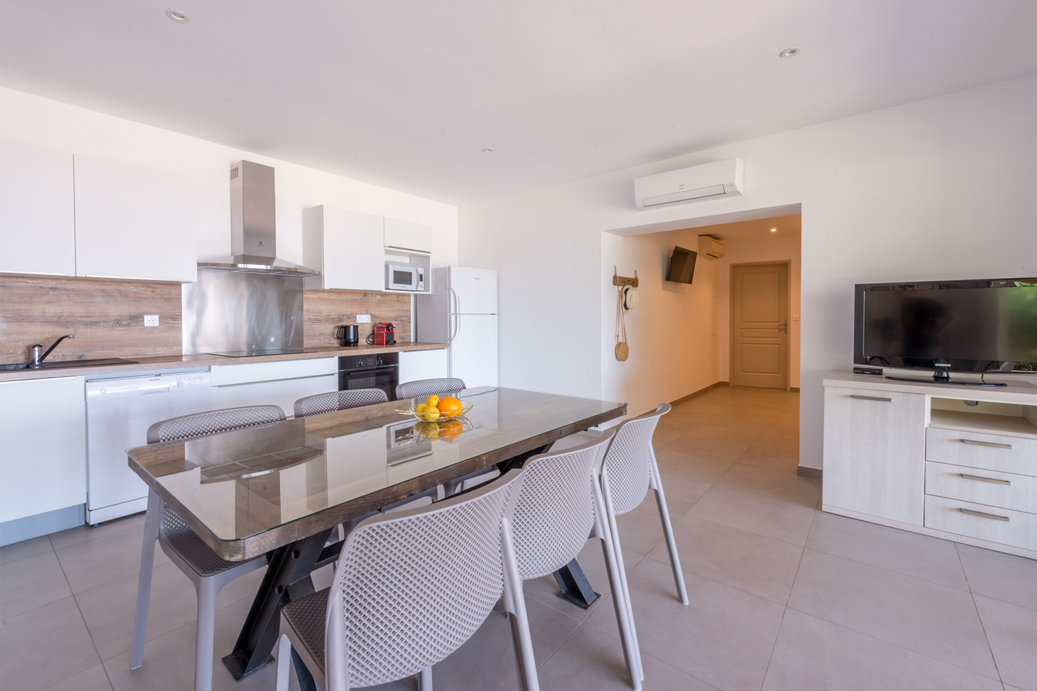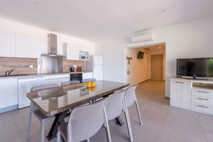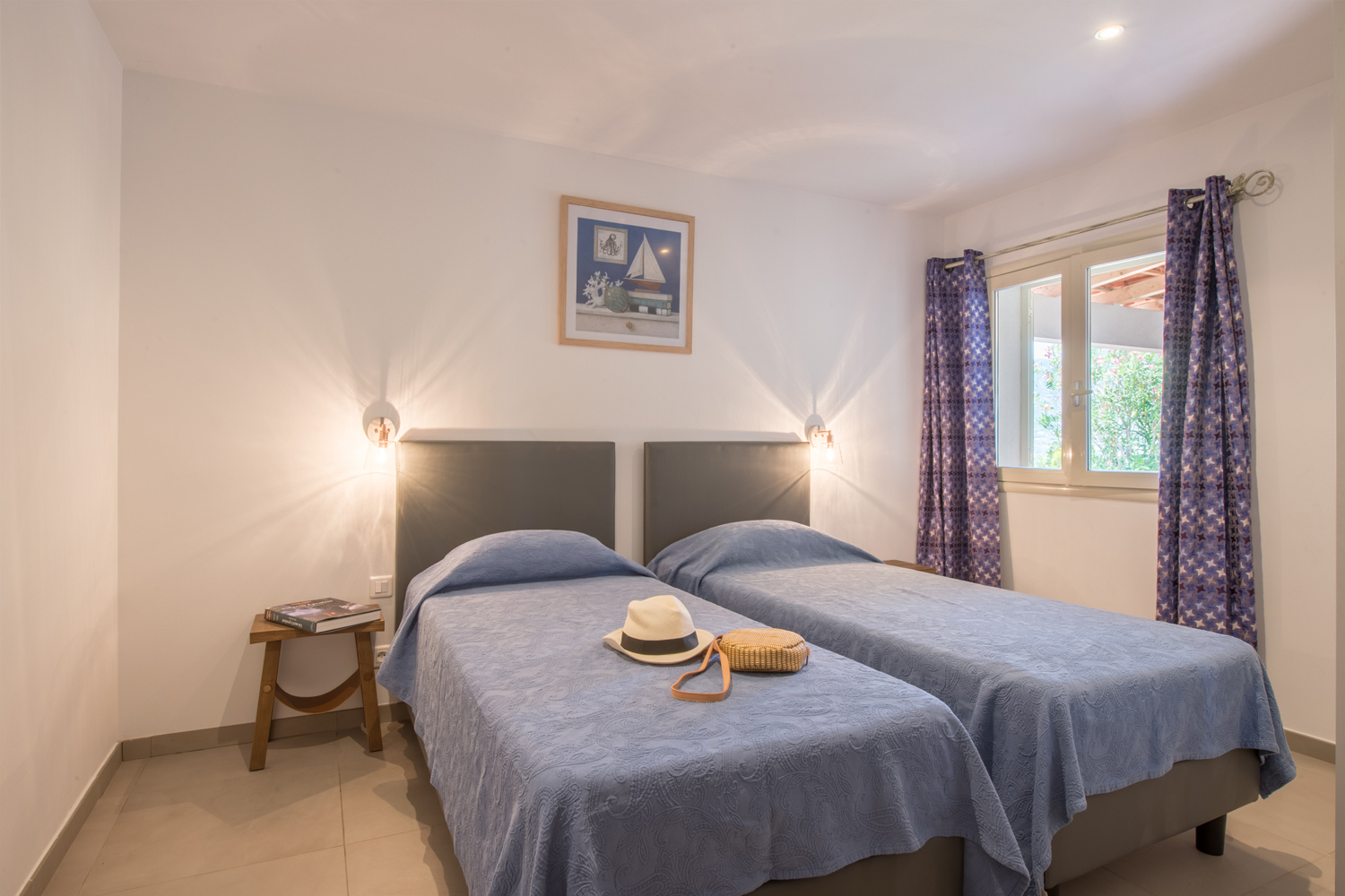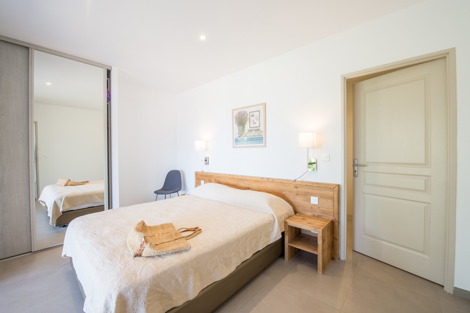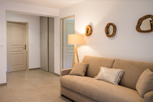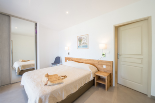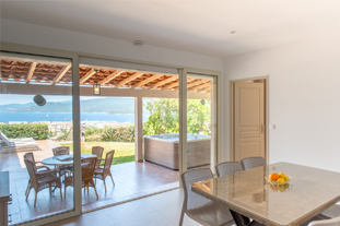 D'une superficie de 90m², pour 2 à 6 personnes, il dispose, quant à lui, d'une suite parentale donnant sur la terrasse par une baie vitrée, face à la mer (lit en 160x200cm, armoire penderie, chevets et liseuses, et salle de bain attenante avec douche italienne, meuble vasque, miroir grossissant, sèche serviettes mural et WC), d'une seconde chambre avec deux lits simples pouvant former un lit double, armoire penderie, coffre-fort, chevet et liseuses, d'une seconde salle de bain avec douche italienne, meuble vasque, sèche-cheveux, miroir grossissant, sèche-serviettes, d’un WC supplémentaire, d'un séjour cuisine américaine coin repas, TV écran plat, WIFI, d’un coin TV avec canapé lit et une seconde TV écran plat. La cuisine est entièrement équipée : grand frigo congélateur, plaques 4 feux gaz, lave-vaisselle, four électrique, four micro-ondes, bouilloire électrique, cafetière Nespresso, grille-pain, table et fer à repasser.